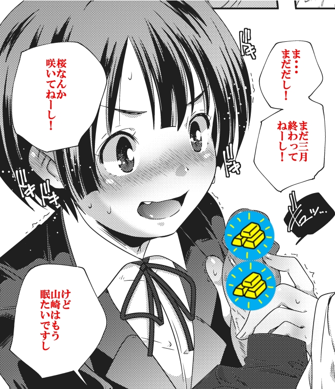 春もうららで、暖かくなってきて眠いですね 山崎です。 春だし、何か心機一転がんばろうー ってことで引っ越しを決めたんですが 〆切だのなんだので、もう色々重なって、てんやわんやな訳ですよ、奥さん。 そんなわけで、とりあえずお仕事報告から 4月10日発売のComicアンスリウム 3月30日発売のエンジェル倶楽部5月号 3月27日発売の電撃アンソロジー・フォトカノKISS(amazon) に、山崎かずま描いてます。 ↑の画像は、アンスリウムの一コマから。 ロリ描いてますし。 あと今月、漫画以外にも色々やっております。 近いうちになんかお見せできるかもですよ、奥さん。 とはいえ、今月はあと一本あるので気を引き締めて 眠いけどがんばるですし。 し! |